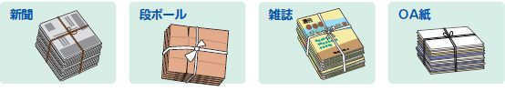 - 無料で引取れる回収品目は、「新聞」「段ボール」「雑誌」「OA紙」です。